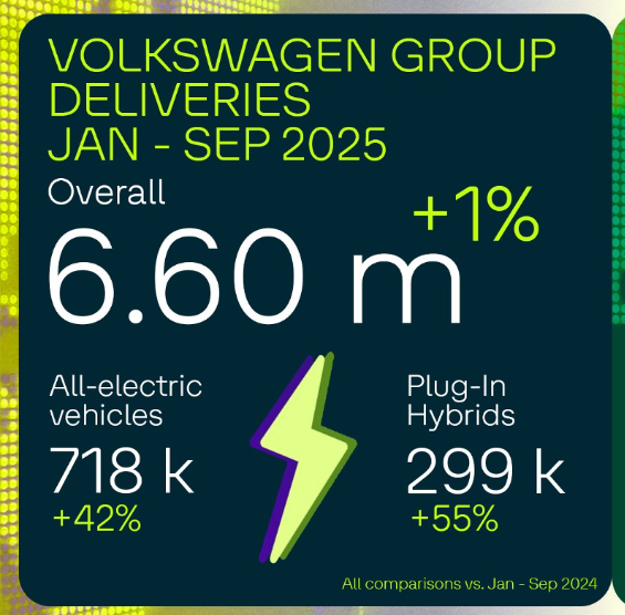 On October 10, 2025, the Volkswagen Group published the deliveries for January to September 2025.